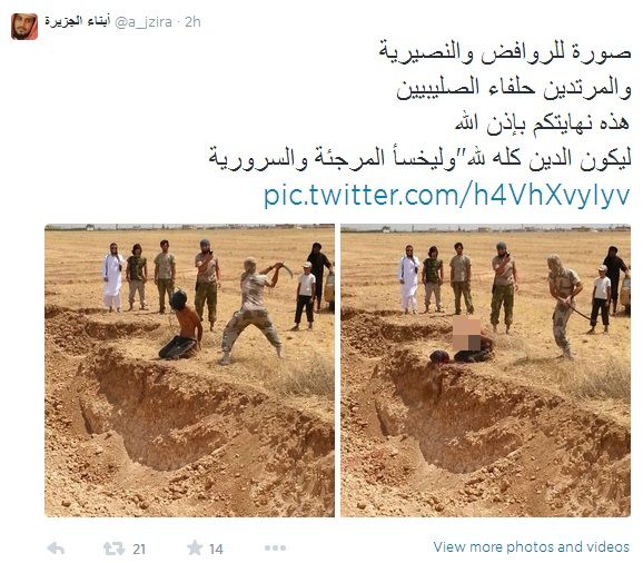 Ωστόσο, αυτό που κάναμε ήταν να αναζητήσουμε στο twitter λογαριασμούς τζιχαντιστών και σας μεταφέρουμε τις εικόνες που αναρτούν… Είναι απίστευτο, αλλά όλο αυτό το λουτρό αίματος το διασκεδάζουν!