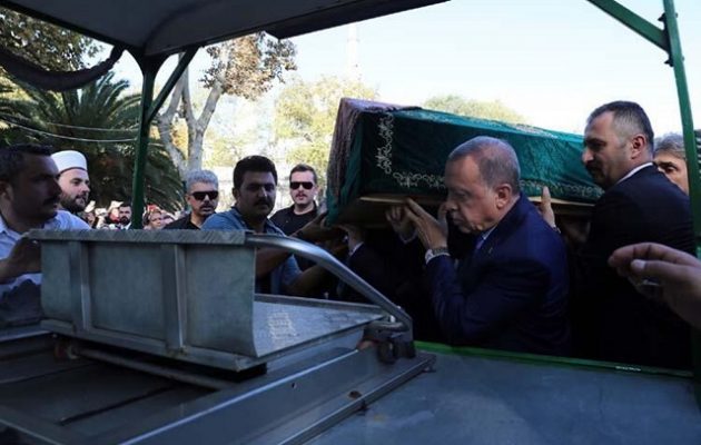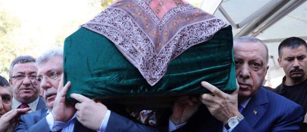 Στην κηδεία της μητέρας του αντιπροέδρου του κυβερνώντος κόμματος AKP, Μουχάμετ Εμίν Ακμπάσογλου, παρέστη ο Πρόεδρος της Τουρκίας, Ρετζέπ Ταγίπ Ερντογάν .