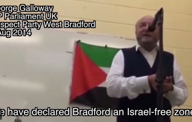 Ο Βρετανός βουλευτής Τζορτζ Γκάλαγουεϊ (George Galloway), διακήρυξε την απαγόρευση των Εβραίων, ισραηλινών προϊόντων και Ισραηλινών ή άλλων Εβραίων τουριστών στο Μπράντφορντ της Αγγλίας.