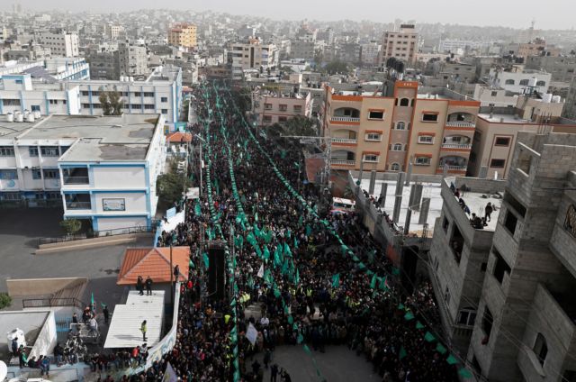 Φωτογραφία από τον εορτασμό της 32ης επετείου της Χαμάς στη Γάζα.