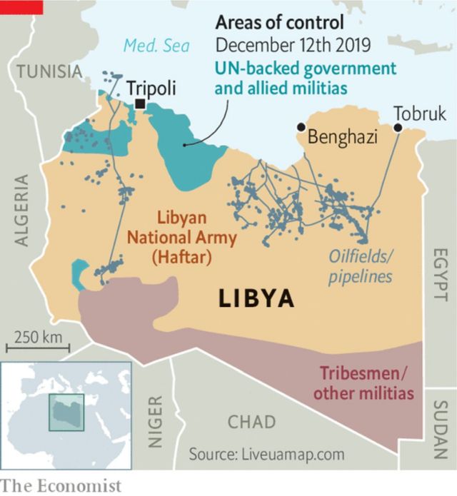 Αν και ο LNA και η ανατολική κυβέρνηση έχουν τη στήριξη της Γαλλίας, της Ρωσίας, της Ιορδανίας, των Ηνωμένων Αραβικών Εμιράτων και άλλων βασικών αραβικών χωρών, η κυβέρνηση της Τρίπολης υποστηρίζεται από την Ιταλία, την Τουρκία και το Κατάρ, γράφει ο «Guardian».