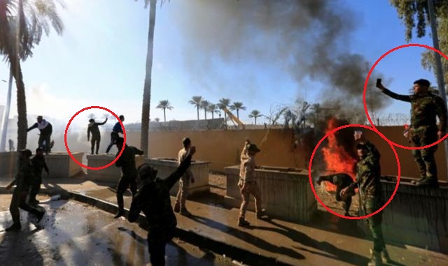 Παραστρατιωτικοί της Αλ Χασχντ Αλ Σαάμπι (Μονάδες Λαϊκής Κινητοποίησης), μεραρχία της οποίας αποτελεί η Καταΐμπ Χεζμπολάχ, αρνούνται να αποχωρήσουν από την περίμετρο της πρεσβείας.