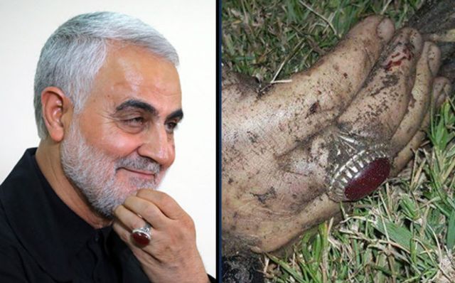 Το χέρι του νεκρού στρατηγού Σολεϊμανί, με το χαρακτηριστικό δαχτυλίδι, στα χωράφια δίπλα στον δρόμο.