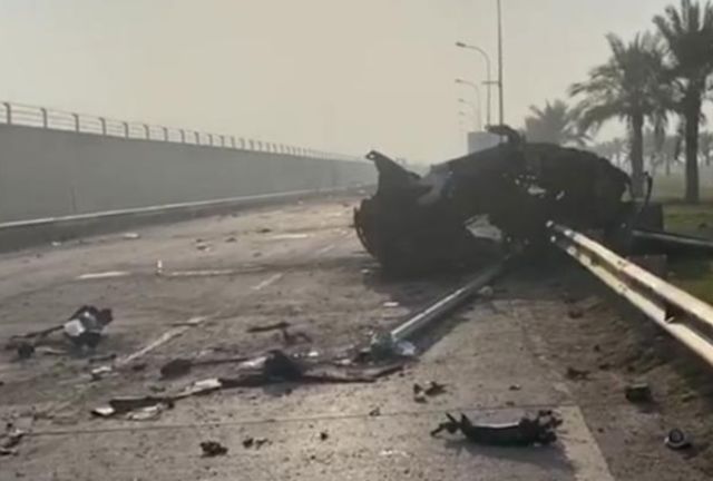 Τα δύο οχήματα που επλήγησαν από αμερικανικό ντρον σε οδό πρόσβασης στο διεθνές αεροδρόμιο της Βαγδάτης. Στο ένα επέβαινε ο Ιρανός στρατηγός.