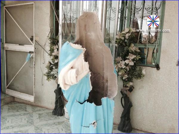 Το Ισλαμικό Κράτος αφαίρεσε όλους τους σταυρούς από τις εκκλησίες, οι Ασσύριοι είναι χριστιανοί, και οι τζιχαντιστές έγραψαν παντού συνθήματα, στους τοίχους, υπέρ του Ισλαμικού Κράτους.