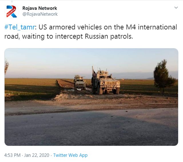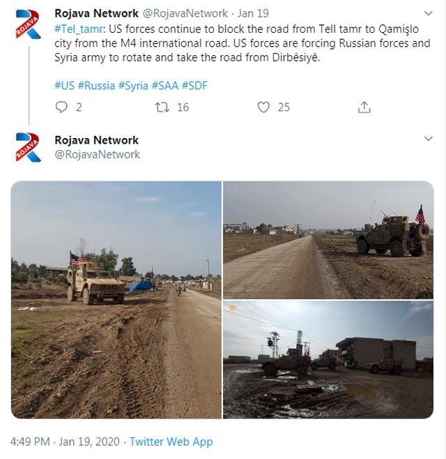Τις προηγούμενες ημέρες, όπως μετέδωσε το Συριακό Παρατηρητήριο Ανθρωπίνων Δικαιωμάτων, οι Αμερικανοί εμπόδισαν ρωσική περίπολο στο χωριό Καρζιγιαράτ στον δρόμο μεταξύ Αλ Μαλκίγια και Μααμπάντα, στην ύπαιθρο της Χασάκα.