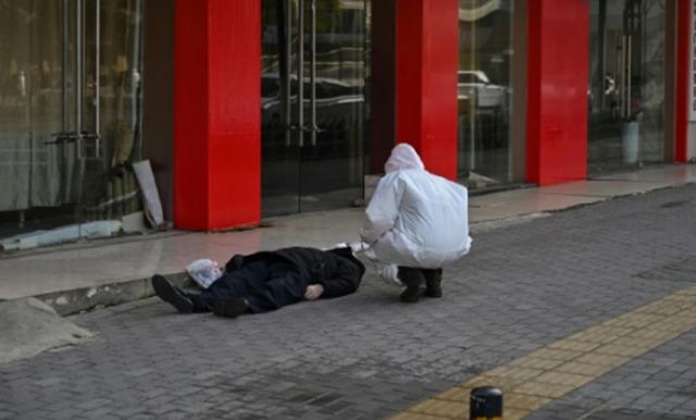 Ο νεκρός στον δρόμο της πόλης κείτονταν ένα τετράγωνο πιο μακριά από το Νοσοκομείο Αριθμός Έξι της Βουχάν, ένα από τα βασικά ιατρικά κέντρα για την αντιμετώπιση των περιστατικών που αφορούν τον κοροναϊό.