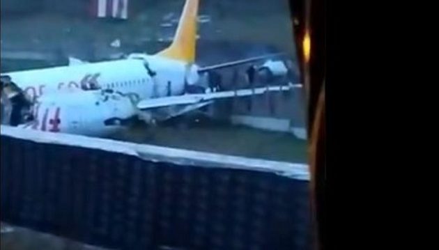 Στις εικόνες που μεταδίδουν τουρκικά τηλεοπτικά δίκτυα από το σημείο, διακρίνεται η άτρακτος του αεροσκάφους να έχει κοπεί στα δύο και ορισμένοι επιβάτες να απομακρύνονται από αυτό.