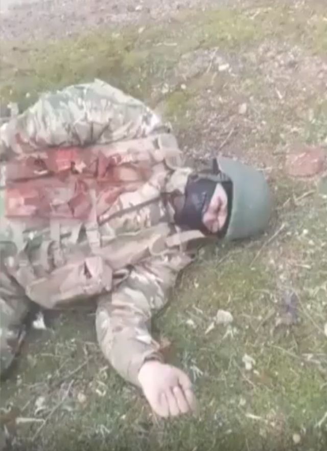 Στις εικόνες βλέπουμε τέσσερις νεκρούς με τουρκικές στολές.
