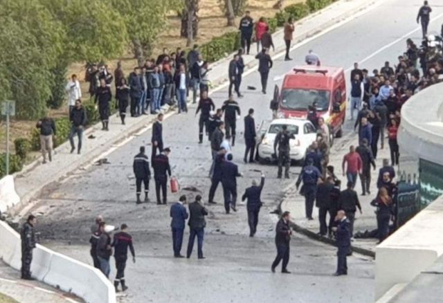 Δύο άνδρες την Παρασκευή, που επέβαιναν σε μοτοσικλέτα, ανατίναξαν τα εκρηκτικά με τα οποία ήταν ζωσμένοι έξω από την Αμερικανική Πρεσβεία στην Τύνιδα, την πρωτεύουσα της Τυνησίας, με αποτέλεσμα να σκοτωθούν και οι δύο και να τραυματιστούν πέντε αστυνομικοί και ένας πολίτης, ανακοίνωσε το υπουργείο Εσωτερικών.