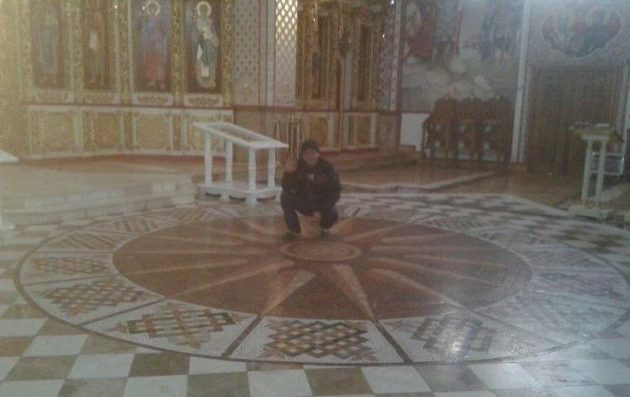Η ιστοσελίδα «Denesen», όπως αναμεταδίδει το Βαλκανικό Περισκόπιο, δημοσιεύει φωτογραφία από το εσωτερικό του ναού της Αγίας Τριάδας στο Ράντοβιτς, στο πάτωμα του οποίου απεικονίζεται ο Ήλιος της Βεργίνας.
