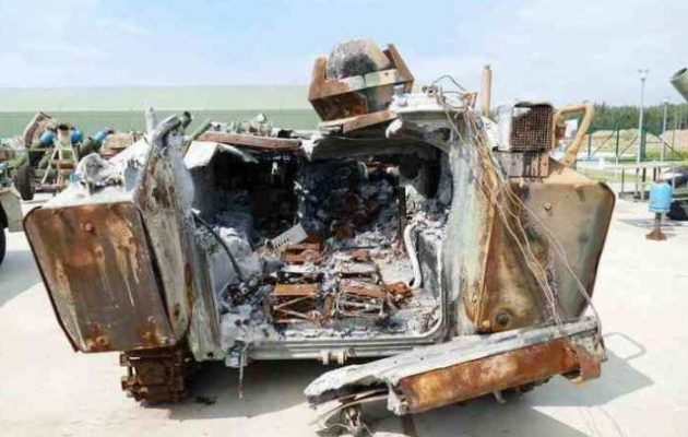 Η ρωσική αντιαρματική ρουκέτα όχι μόνο κατέστρεψε το όχημα με επιτυχία, αλλά και έλιωσε την ασπίδα του, όπως αποδεικνύεται από τις φωτογραφίες που τραβήχτηκαν στη Συρία.