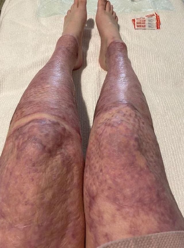 Η ίδια ανέβασε στο Instagram μια φωτογραφία από τα εγκαύματα στα πόδια της λέγοντας ήταν ένα από τα τελευταία μέρη του σώματός της που είχαν μοσχεύματα δέρματος.