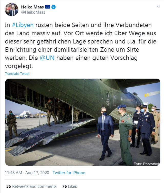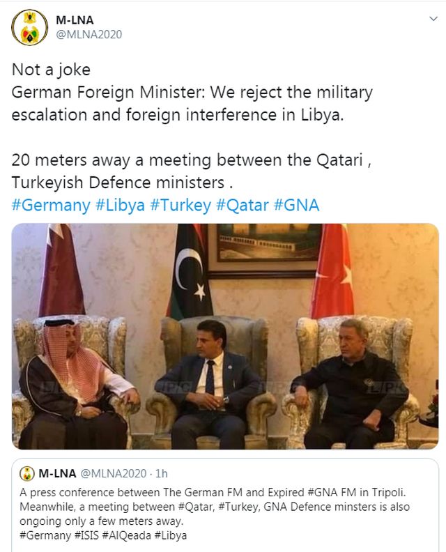 Το γεγονός ότι Τούρκοι και Καταριανοί βρίσκονται στη Λιβύη σχεδιάζοντας πόλεμο και παράλληλα επισκέπτεται τη χώρα ο Χάικο Μάας, ως περιστέρι της ειρήνης, προκαλεί εύλογες σκέψεις για τον πραγματικό σκοπό της γερμανικής επίσκεψης.