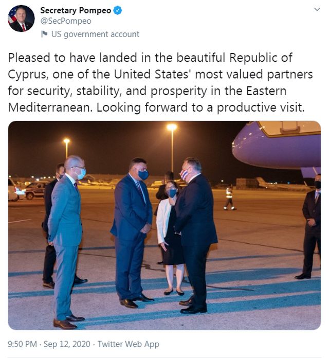 Ηχηρό ήταν το Tweet του Μάικ Πομπέο μόλις προσγειώθηκε στην Κυπριακή Δημοκρατία. Ο Αμερικανός υπουργός Εξωτερικών εγκωμίασε τη σημασία της Κύπρου για την ασφάλεια, τη σταθερότητα και την ευημερία της περιοχής.