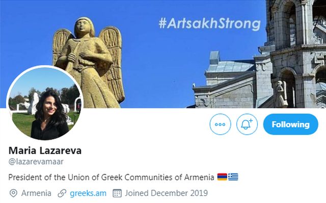Η ίδια, μιλώντας αποκλειστικά στο, greekrivieranews.gr, υπογραμμίζει ότι στο Αρτσάχ υπάρχει μια μικρή ελληνική κοινότητα περίπου 40 ατόμων με την οποία είναι σε καθημερινή επαφή.