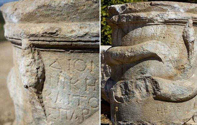 Μαρμάρινο βωμό με σκαλιστή μορφή που απεικονίζει ένα κουλουριασμένο φίδι έφεραν στο φως αρχαιολόγοι στα αρχαία Πάταρα της Λυκίας, κοντά στην Αττάλεια, το οποίο όπως φαίνεται φέρει αρχαιοελληνική γραφή.