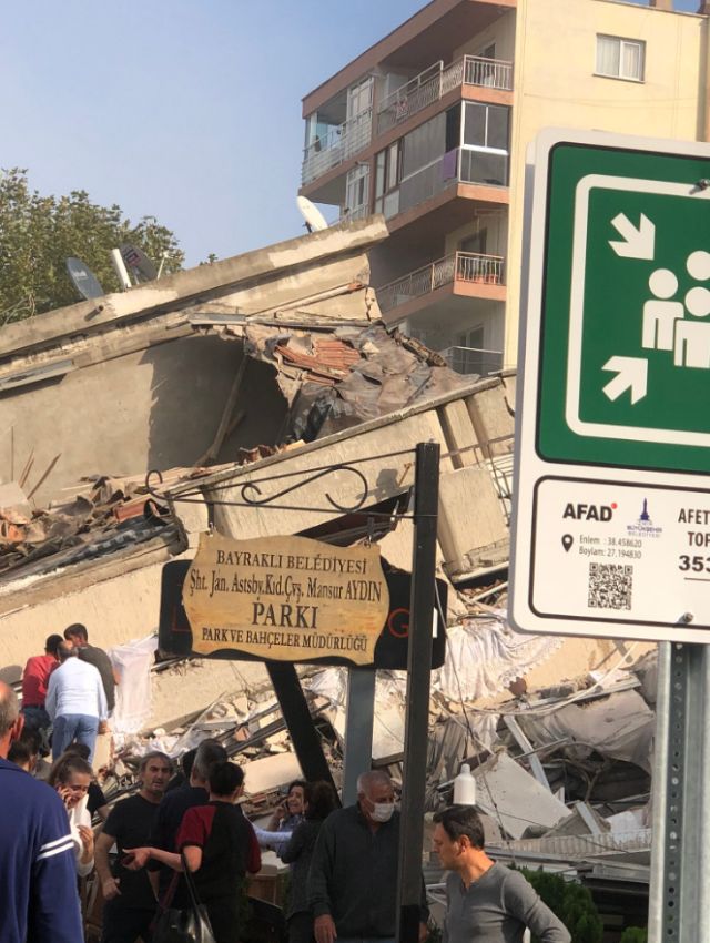 Οι φωτογραφίες που δημοσιεύουμε (πάνω) είναι από τη Σμύρνη, όπου έχουν καταρρεύσει κτίρια.