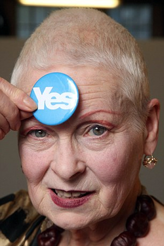 «Ναι» στην ανεξαρτητοποίηση της Σκωτίας λέει η σχεδιάστρια μόδας Βίβιεν Γουέστγουντ (Vivienne Westwood), μέσω της εβδομάδας μόδας στο Λονδίνο. Η ίδια, εμφανίστηκε κρατώντας μία σημαία της Σκωτίας για να στείλει το δικό της μήνυμα λίγες ώρες πριν την προσφυγή των Σκωτσέζων στις κάλπες για το επίμαχο δημοψήφισμα.