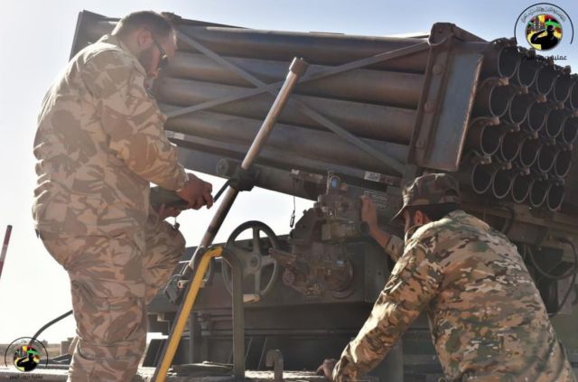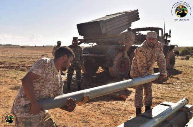Οι τζιχαντιστές, που παριστάνουν τον «στρατό» της Κυβέρνησης Εθνικής Συμφωνίας, ανάρτησαν στα μέσα κοινωνικής δικτύωσης φωτογραφίες από την εκπαίδευσή τους με πολλαπλούς εκτοξευτές πυραύλων: