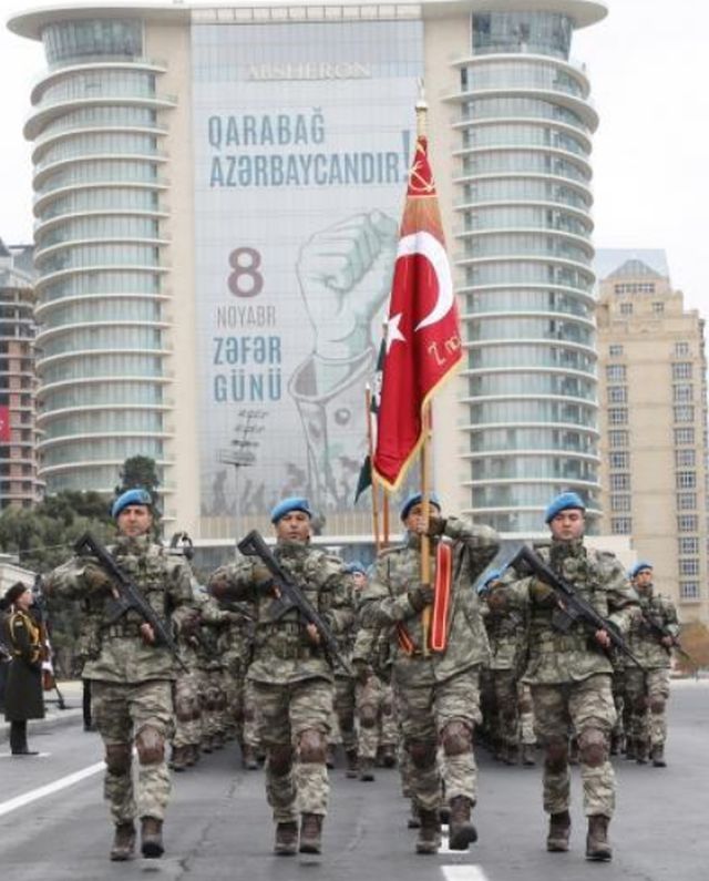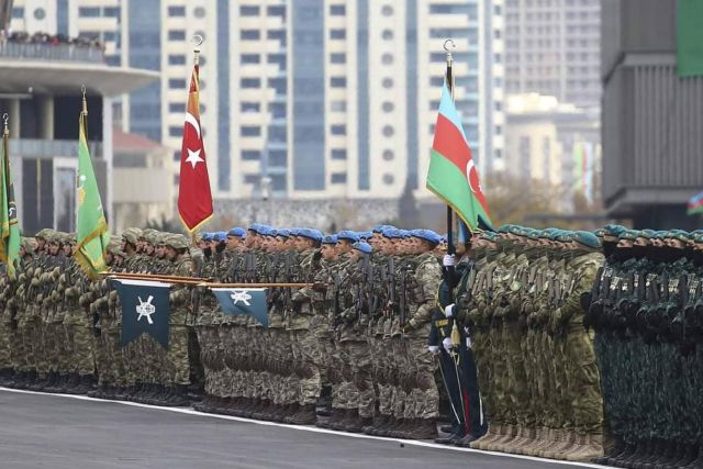 Την Πέμπτη πραγματοποιήθηκε στην πρωτεύουσα του Αζερμπαϊτζάν, Μπακού, στρατιωτική παρέλαση – «θρίαμβος», μπροστά στους υπερήφανους Ερντογάν και Αλίεφ, για να εορταστεί η νίκη του Αζερμπαϊτζάν και της Τουρκίας επί των Αρμενίων του Ναγκόρνο Καραμπάχ.