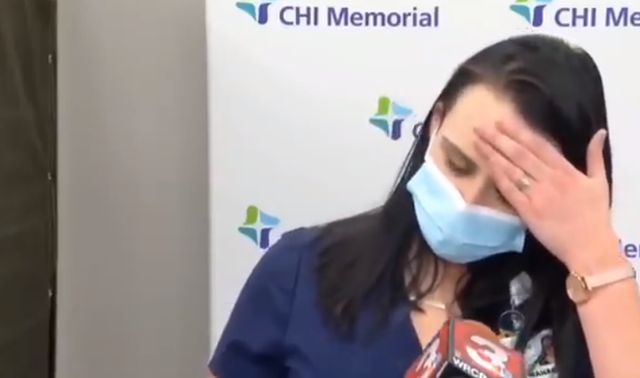 Η Τίφανι Ντόβερ, επικεφαλής νοσοκόμα στο CHI Memorial, έκανε το εμβόλιο μαζί με άλλους γιατρούς παρουσία τηλεοπτικών συνεργείων και λίγο μετά ένιωσε αδιαθεσία:
