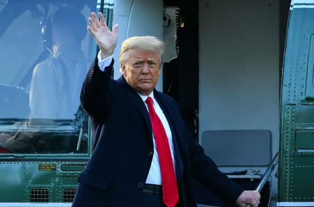 Ο Ντόναλντ Τραμπ αποχώρησε από τον Λευκό Οίκο επιβαίνοντας στο Marine One, το ελικόπτερο του Σώματος των Πεζοναυτών τον οποίο είχε προσγειωθεί στον κήπο του Λευκού Οίκου για να τον παραλάβει, λίγες ώρες πριν από την ορκωμοσία του Τζο Μπάιντεν στην προεδρία.