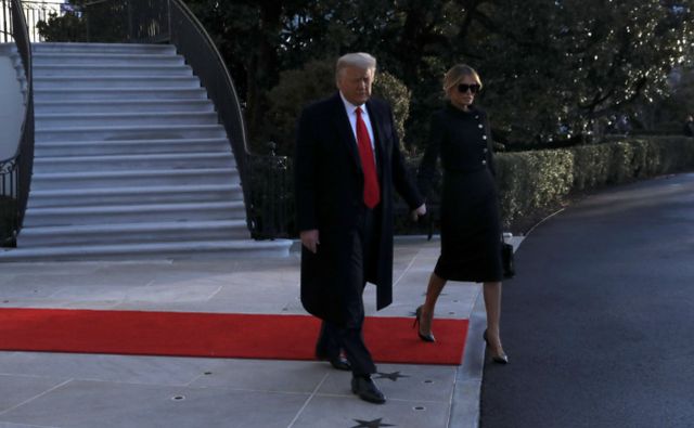 Κατευθυνόμενος προς το ελικόπτερο μαζί με την σύζυγό του, ο Ντόναλντ Τραμπ μίλησε στους δημοσιογράφους για τα «πολλά επιτεύγματά» του στην αμερικανική προεδρία και πρόσθεσε ότι η Μελάνια «αγαπά τον αμερικανικό λαό».