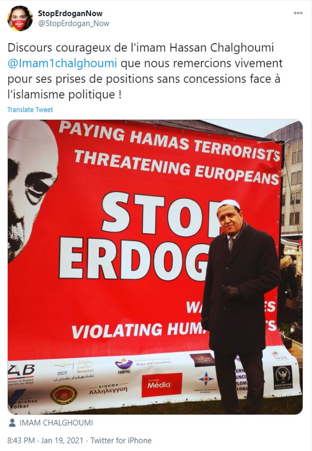 Κεντρικό σύνθημα ήταν σταματήστε τον Ερντογάν και μεταξύ άλλων τονιζόταν ότι υποστηρίζει τους τρομοκράτες της Χαμάς, δίνοντάς τους μέχρι και τουρκικά διαβατήρια. Μια απειλή για την ασφάλεια του δυτικού κόσμου, την ώρα που η Τουρκία ζητά από την Ευρωπαϊκή Ένωση την απελευθέρωση της βίζας για τους κατόχους τουρκικών διαβατηρίων.