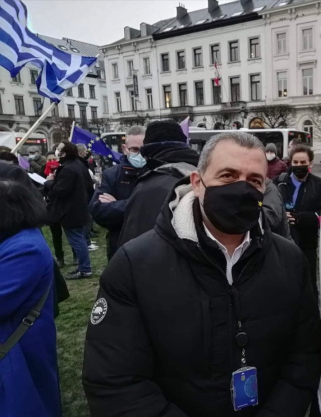 Ο Ελληνοκύπριος ευρωβουλευτής Λουκάς Φουρλάς στη συγκέντρωση του συνασπισμού «STOP ERDOGAN»