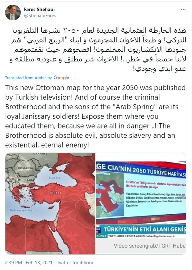 Όπως γράφουν, «σύμφωνα με τον χάρτη το 2050 η Τουρκία θα ελέγχει όλη τη Βόρεια Αφρική, ολόκληρη τη Μέση Ανατολή, τα Βαλκάνια, τον Καύκασο και την κεντρική Ασία (…) Μέσα σε τριάντα χρόνια, η Τουρκία θα ανέλθει στη θέση της περιφερειακής και της παγκόσμιας δύναμης και θα κυριαρχεί σε τρεις θάλασσες.