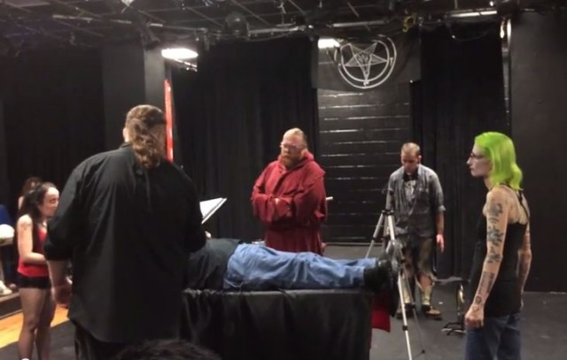 Ενώ στην συνέχεια έγινε και η σατανιστική τελετή, με έναν άνδρα ξαπλωμένο πάνω σε ένα τραπέζι, όπως ακριβώς βλέπουμε και στις ταινίες τρόμου.