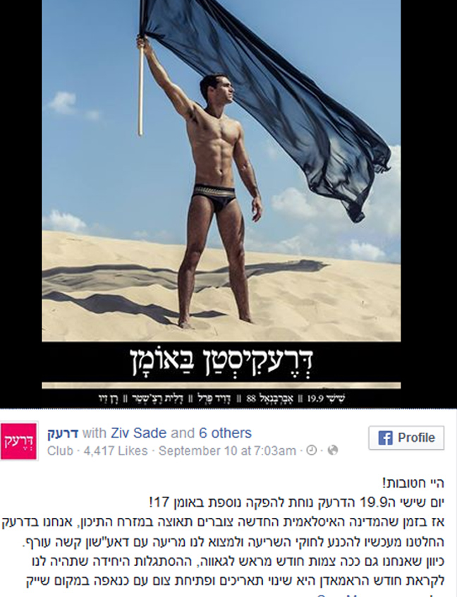 Πηγή έμπνευσης για… γκέι πάρτι στο Ισραήλ αποτέλεσε το Ισλαμικό Κράτος. Όσο απίστευτο και αν ακούγεται, με αυτόν τον τρόπο σκέφτηκε ο διοργανωτής, Dreck να διαφημίσει το μεγάλο event που έχει κανονιστεί για την ερχόμενη Παρασκευή στο Τελ Αβίβ, στέλνοντας παράλληλα το δικό του μήνυμα στους παράφρονες τζιχαντιστές από το Ισλαμικό Κράτος.