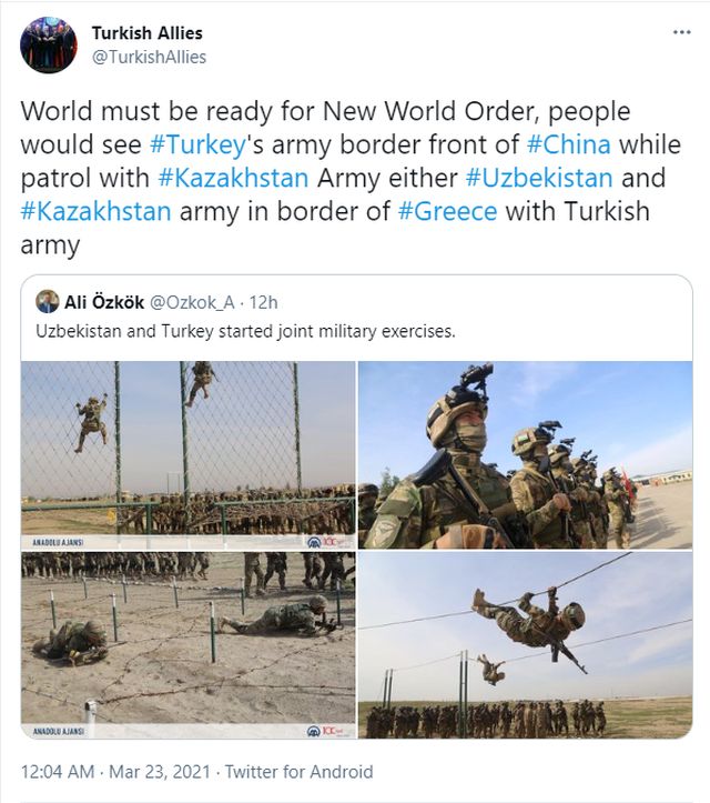 Τη Δευτέρα άρχισαν κοινές στρατιωτικές ασκήσεις μεταξύ των ενόπλων δυνάμεων του Ουζμπεκιστάν και της Τουρκίας στην Τερμέζ του Ουζμπεκιστάν.