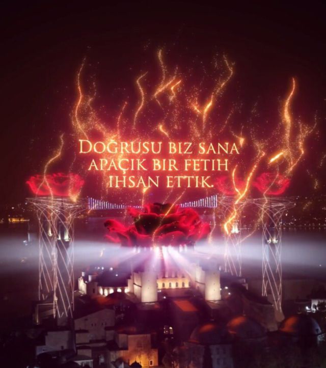 »Ο Μωάμεθ είπε ότι “η Κωνσταντινούπολη σίγουρα θα κατακτηθεί. Τί σπουδαίος στρατηγός ο στρατηγός που θα την κατακτήσει, πόσο μεγάλος στρατός είναι αυτός ο στρατός”», αναρτώντας παράλληλα και μία φωτογραφία της Αγίας Σοφίας ως τζαμί, με τους 4 μιναρέδες.