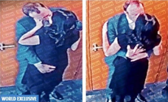 Οι εικόνες ήταν από κάμερα ασφαλείας και έδειξαν το παράνομο ζευγάρι να φιλιέται παθιασμένα στον διάδρομο έξω από το γραφείο του.