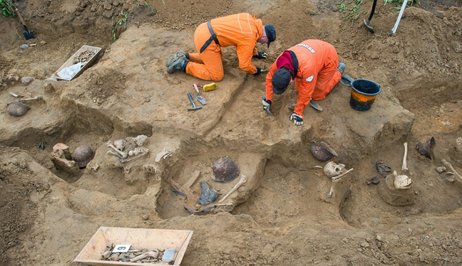 Τα απίστευτα ευρήματα εντόπισε η αρχαιολογική σκαπάνη κοντά στο Βραδεμβούργο, στην περιοχή Κλεσίν. Πρόκειται σύμφωνα με τις πρώτες εκτιμήσεις για τα οστά Γερμανών στρατιωτών που μάχονταν δυνάμεις των Σοβιετικών πριν οι τελευταίοι μπουν στο Βερολίνο.