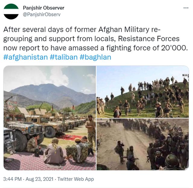 Ο πρώην αφγανικός στρατός, αυτός που διαλύθηκε πριν μία εβδομάδα με την κατάληψη της Καμπούλ, ανασυντάσσεται στην Κοιλάδα Παντζσίρ ως Εθνικό Μέτωπο Αντίστασης.