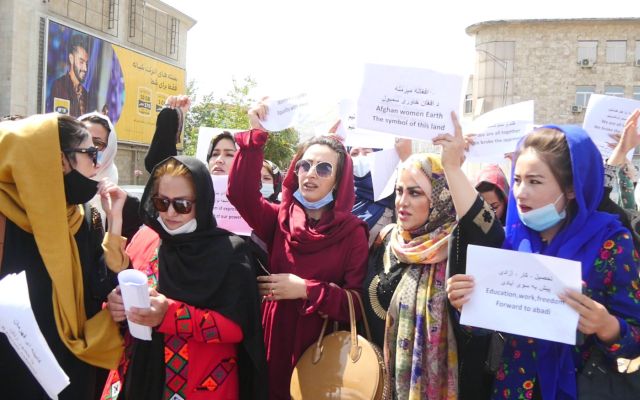 Το Σάββατο οι ακτιβίστριες πραγματοποίησαν διαδήλωση κοντά στο αφγανικό προεδρικό μέγαρο και κρατούσαν πανό που έγραφαν «Δεν είμαστε οι γυναίκες των χρόνων του ’90».