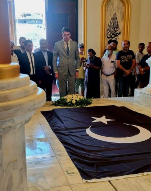 «Κατέθεσα στεφάνι στο κενοτάφιο του Λίβυου ήρωα Ομάρ Αλ Μουχτάρ (1862-1931), ο οποίος πρόσφερε τη ζωή του στην υπόθεση της Ελευθερίας πριν από 90 χρόνια.