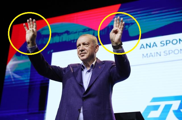 Θρασύτατος, ενώ βρίσκεται σε αμερικανικό έδαφος, χαιρέτησε το κοινό του με τον χαιρετισμό «ραμπιά» της Μουσουλμανικής Αδελφότητας. Η κίνηση έχει υψηλό συμβολισμό και σημασία για τους ισλαμιστές. Εμφανίστηκε για πρώτη στα social media φορά στα τέλη Αυγούστου του 2013, την περίοδο των διαδηλώσεων στην Αίγυπτο. Χρησιμοποιήθηκε από τη Μουσουλμανική Αδελφότητα και τους υποστηρικτές της στην Αίγυπτο μετά την ανατροπή του Μοχάμεντ Μορσί. Στα αραβικά σημαίνει τέταρτο-η (η λέξη Rabia ή Rabaa σημαίνει «τέσσερα») και είναι επίσης το όνομα της διάσημης πλατείας Rabaa του Καΐρου, η οποία πήρε το όνομά της από την Αγία Rabia al-Adawiyya. Η πλατεία Rabaa ήταν το σημείο όπου έγιναν σημαντικές διαμαρτυρίες εναντίον του στρατιωτικού κινήματος του Σίσι, που έσωσε την Αίγυπτο από τους παλαβούς. Όταν η ραμπιά χρησιμοποιήθηκε για πρώτη φορά είχε τριπλή σημειολογία: Τότε ο Μόρσι ήταν ο τέταρτος πρόεδρος της χώρας, μετά τον Νάσερ, τον Σαντάντ και τον Μουμπάρακ. Θύμιζε επίσης την πλατεία Ραμπιάτουλ Αντεβιγέ, το κεντρικό σημείο συγκέντρωσης των οπαδών του Μόρσι. Και τέλος χρησιμοποιήθηκε αντί του σήματος της νίκης που έκαναν οι οπαδοί του στρατηγού Αμπντούλ Φατάχ αλ-Σίσι το οποίο θεωρήθηκε δυτική επιρροή. Το 2013, ο Ερντογάν, ως πρωθυπουργός ακόμη τότε, χαιρέτισε για πρώτη φορά με «ραμπιά» σε συγκέντρωση του κόμματος του στη Προύσα. Αμέσως η κίνησή του υιοθετήθηκε από όλους του υπουργούς και τους οπαδούς του Κόμματος Δικαιοσύνης και Ανάπτυξης (ΑΚΡ), αλλά και από θρησκευόμενους συντηρητικούς κύκλους. Ωστόσο στην Τουρκία δίνεται άλλη ερμηνεία στο χαιρετισμό του Ερντογάν και ορισμένοι στην κίνηση αυτή τον τετραπλό συμβολισμό «ένα έθνος», «μία σημαία», «μία πατρίδα», «ένα κράτος». Σε κάθε περίπτωση είναι ένας ισλαμοφασιστικός χαιρετισμός.