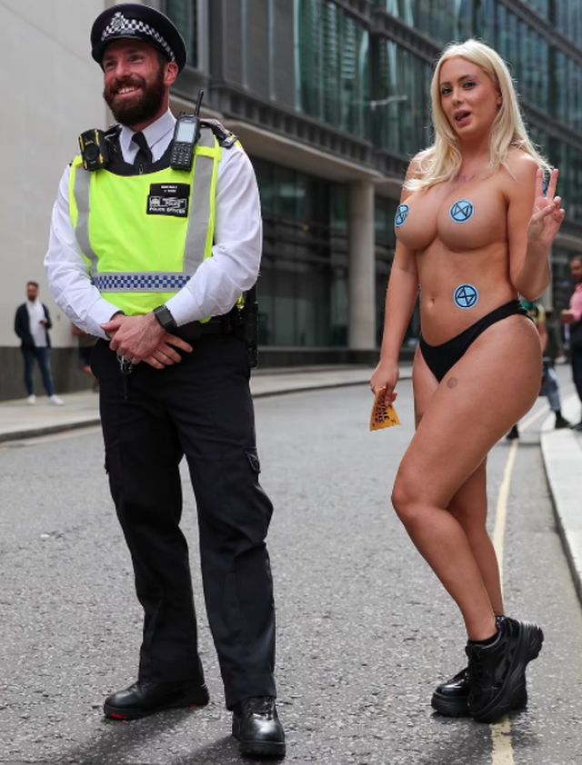 Η Λόρα Άμχερστ, μια διαδηλώτρια της «Extinction Rebellion» τα «πέταξε όλα» στους δρόμους του Λονδίνου, απαιτώντας από την κυβέρνηση να αναγνωρίσει τη «γυμνή αλήθεια» για την κλιματική αλλαγή.