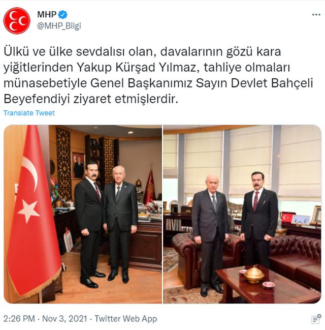 Ο Τούρκος αρχιμαφιόζος Κουρσάτ Γιλμάζ (Kürşat Yılmaz) επισκέφθηκε την Τετάρτη 3 Νοεμβρίου τον ηγέτη των Γκρίζων Λύκων, του Κόμματος Εθνικιστικής Δράσης (MHP), Ντεβλέτ Μπαχτσελί, μετά την απελευθέρωση του από τη φυλακή, όπου εξέτιε πολυετή ποινή κάθειρξης για πολλές κατηγορίες, συμπεριλαμβανομένης της «ίδρυσης και διαχείρισης εγκληματικής οργάνωσης».