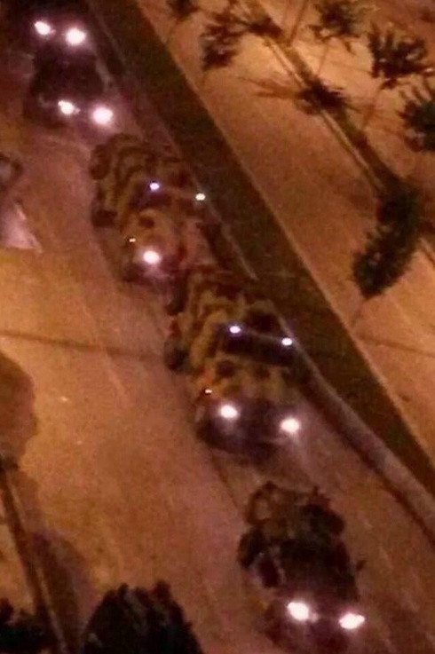 Όπως βλέπετε και στη φωτογραφία που αναρτήθηκε στο twitter από κάτοικο της πόλης, οι Τούρκοι στρατιώτες κινούνται σε πυκνή παράταξη.