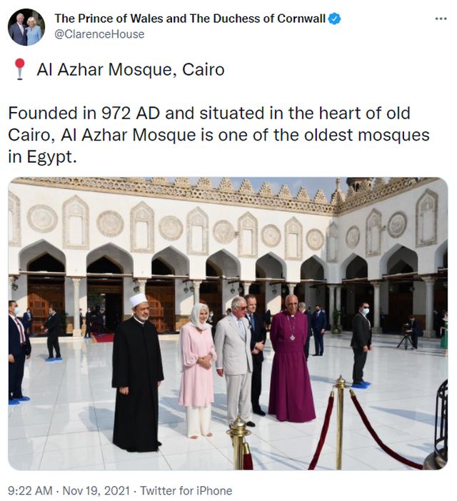 Αυτή είναι η τρίτη επίσκεψη του πρίγκιπα Καρόλου στο τζαμί.