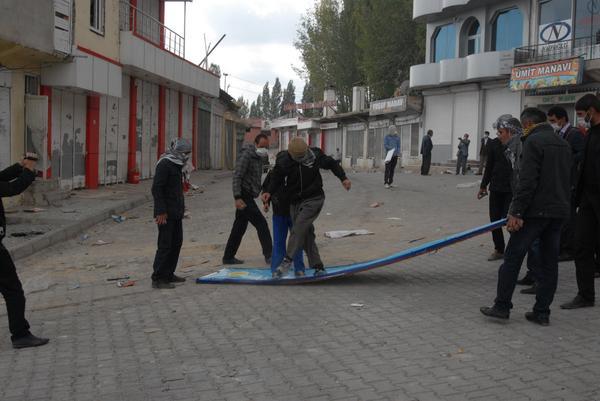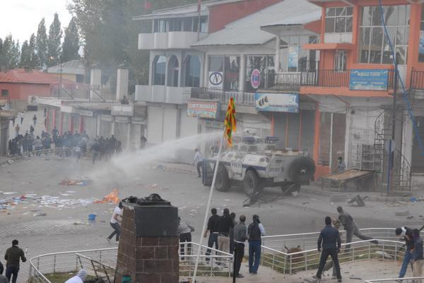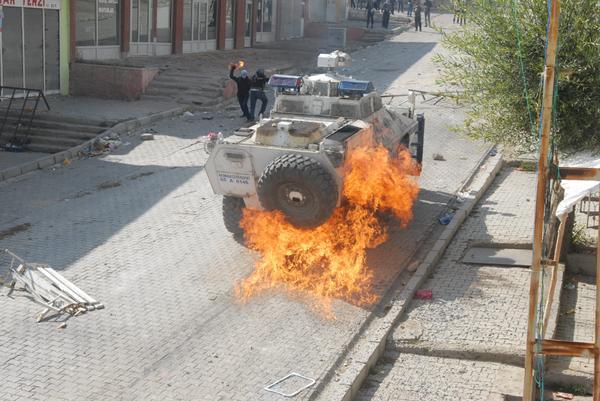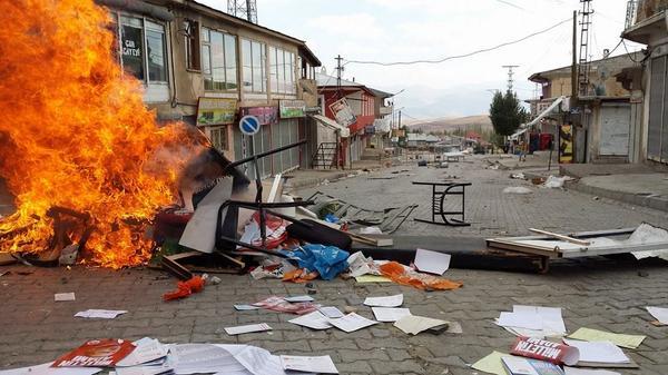 Ακόμα και σε αυτή τη μικρή πόλη οι φωτιές της εξέγερσης ενάντια στο Ισλαμικό Κράτος και στο τουρκικό κράτος που το στηρίζει έχουν ανάψει. Οι φωτογραφίες που έχουν αναρτηθεί στο twitter είναι χαρακτηριστικές. Οι Κούρδοι διαδηλωτές επιτίθενται με βόμβες μολότοφ στα οχήματα της Αστυνομίας που είναι εξοπλισμένα με κανόνια νερού.