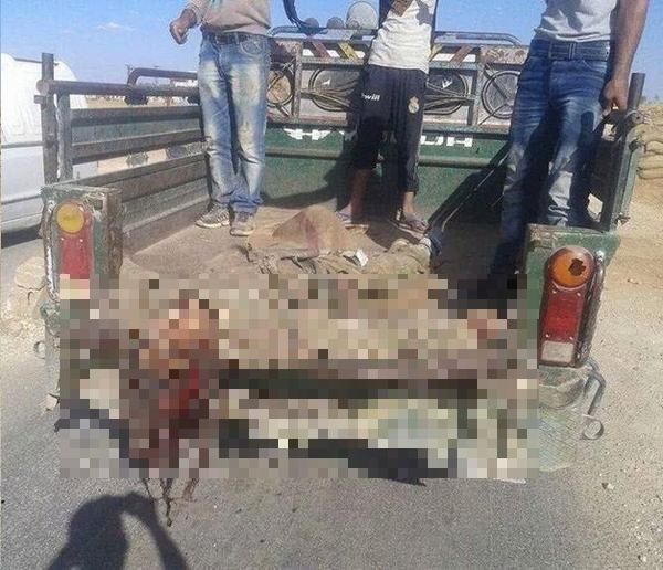 Στις εικόνες, που τις έχουμε καλύψει με πίξελ, δείχνουν νεκρούς Κούρδους μαχητές του YPG. Ωστόσο, δεν μπορούμε να βεβαιώσουμε ότι είναι όντως από τις μάχες στην Κομπάνι ή ότι πρόκειται για προπαγάνδα των τζιχαντιστών. Ειδικά η φωτογραφία με τη σημαία, να κυματίζει, μας μοιάζει για μοντάζ.