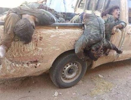 Ανεβάζουν συνέχεια φωτογραφίες με κρεμασμένους και καμένους μαχητές Κούρδους.