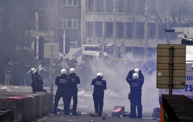 Η ατμόσφαιρα εντάθηκε, όταν, σύμφωνα με πληροφορίες που μετέδωσαν τα βελγικά ΜΜΕ, κάποιοι διαδηλωτές εκτόξευσαν κροτίδες κατά της αστυνομίας, πριν μπουν σε δράση τα κανόνια νερού και τα δακρυγόνα από την πλευρά των βελγικών αρχών.