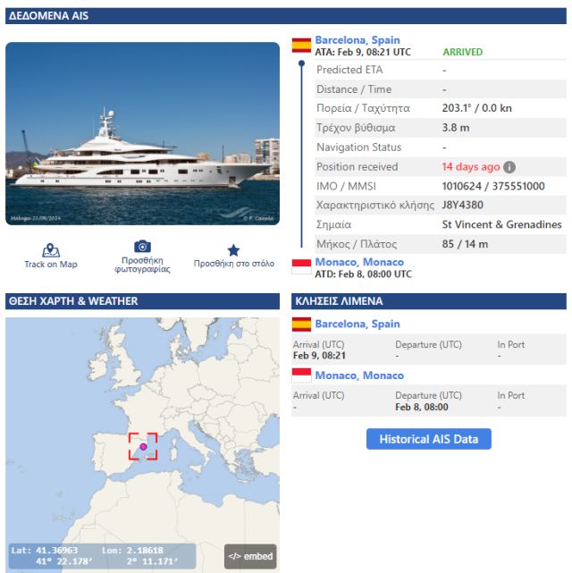 Σύμφωνα με την ισπανική εφημερίδα El País, πρόκειται για τη θαλαμηγό Valérie, που πιστεύεται ότι ανήκει στον Σεργκέι Τσέμεζοφ, τον επικεφαλής του Rostec, ρωσικού ομίλου της αμυντικής βιομηχανίας, άνθρωπο που θεωρείται πως ανήκει στον στενό κύκλο του Ρώσου προέδρου Βλαντίμιρ Πούτιν.